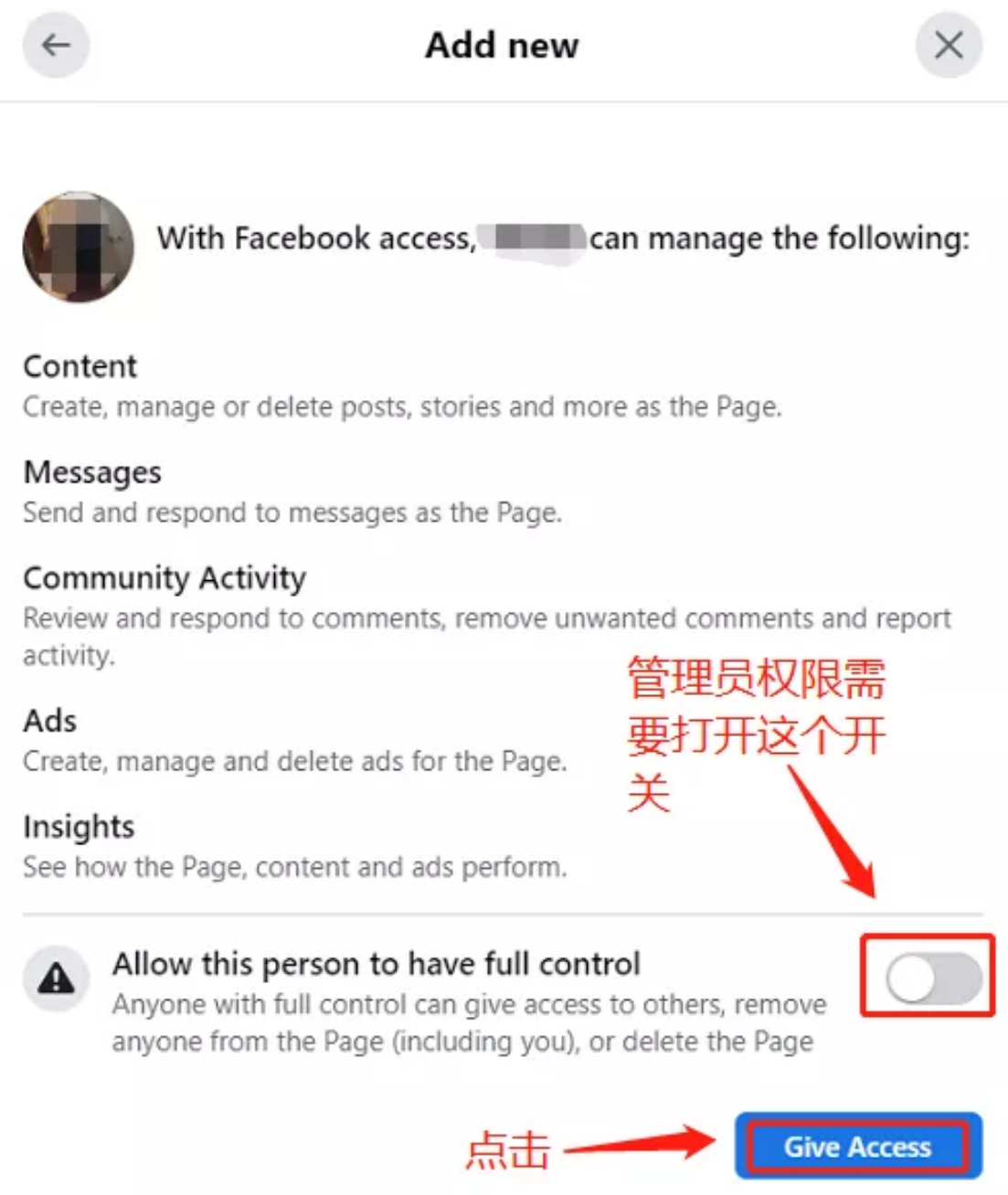 11、打開full control的開關(guān),然后點(diǎn)擊Give Access