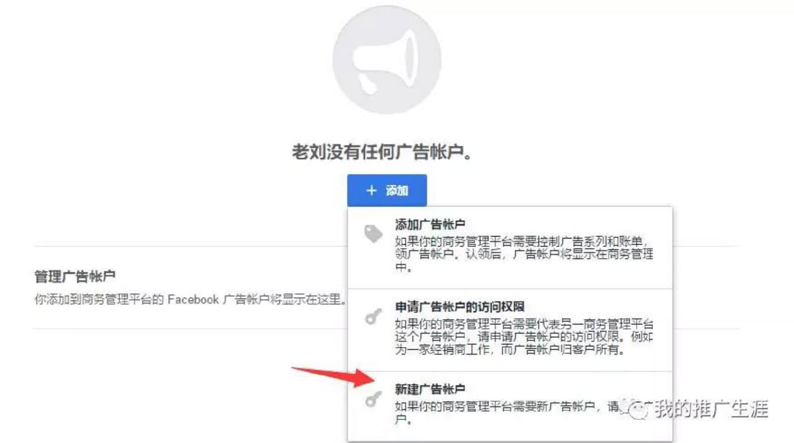 然后同樣點(diǎn)擊左側(cè)的“廣告賬戶”,然后點(diǎn)擊“新建廣告賬戶”,輸入信息,然后開(kāi)通全部權(quán)限,這樣一個(gè)新的廣告賬戶就生成了。