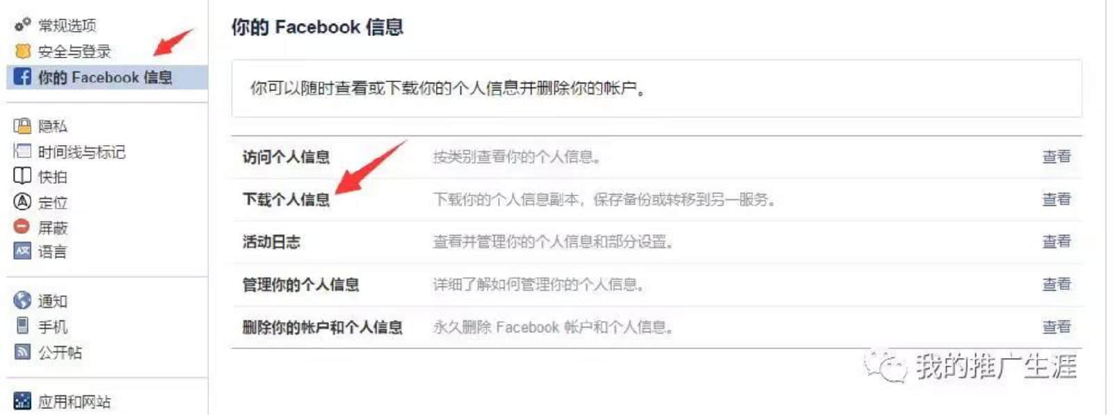 3,下載你的FB信息副本,這樣你就可以清楚知道你的FB賬號(hào)所有信息,申訴的時(shí)候要什么提供什么。