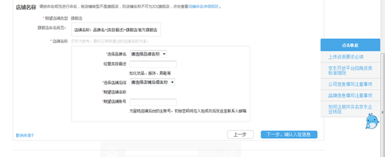 選擇主營二級(jí)類目,點(diǎn)擊下一步店鋪命名