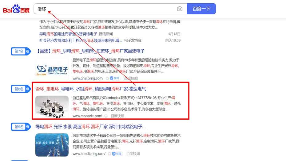 盛世傳媒為霍達(dá)提供了滑環(huán)相關(guān)的關(guān)鍵詞的搜索排名服務(wù)!