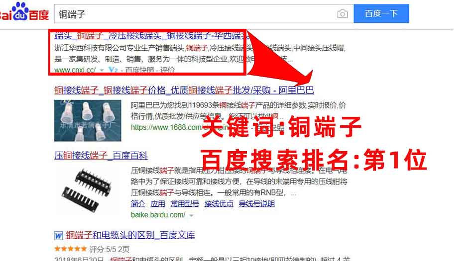 指定主關(guān)鍵詞:端頭,銅端子,冷壓接線端頭,銅接線端子,必須要出現(xiàn)在百度首頁.